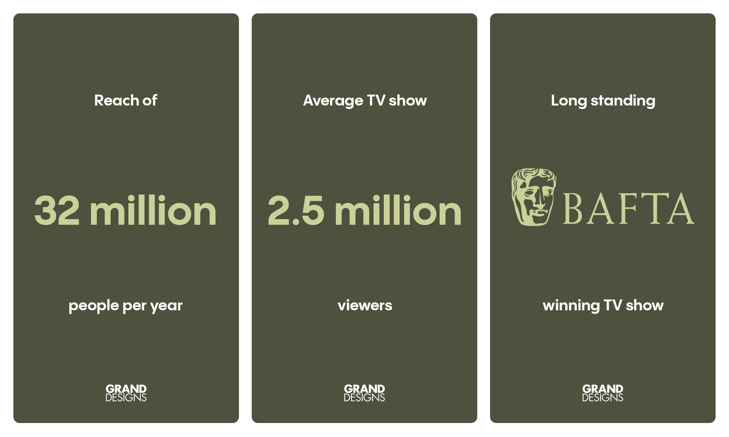 Grand Designs is the UK’s most loved property programme and is widely recognisable as the pre-eminent series on modern architecture and design in Britain. It charts the in-depth process of ambitious design projects, from initial intricacies of blueprints through to the challenging task of turning those concepts into a spectacular and practical living space.