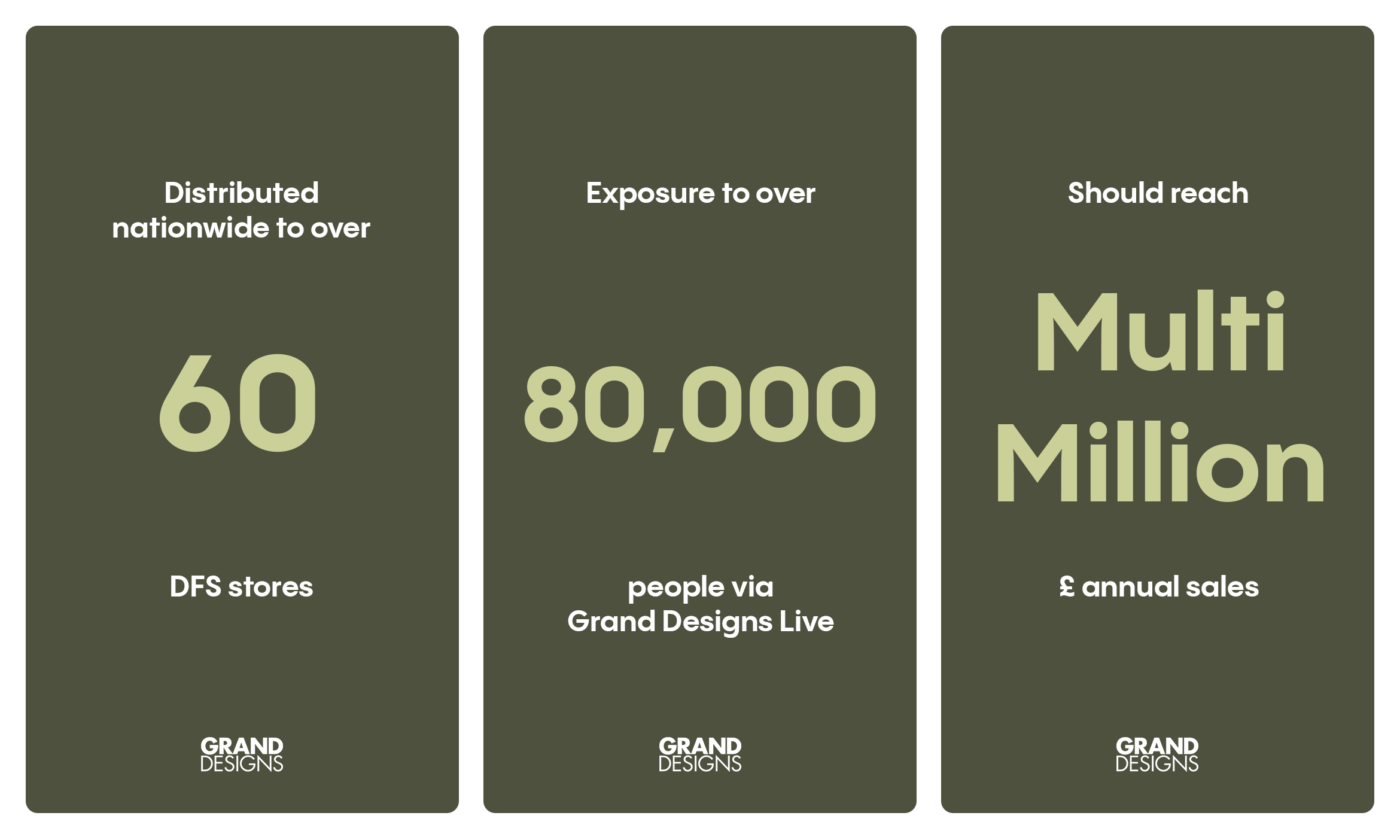 Grand Designs is one of the UK’s most recognisable and trusted contemporary design brands. With a loyal, highly engaged audience across television, print and digital platforms, we knew the collaboration would benefit from the brand’s strong national visibility and authority in contemporary design. There’s a clear style category to play with, and the exciting opportunity to incorporate concepts to enter new territory on the shop floor.